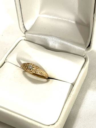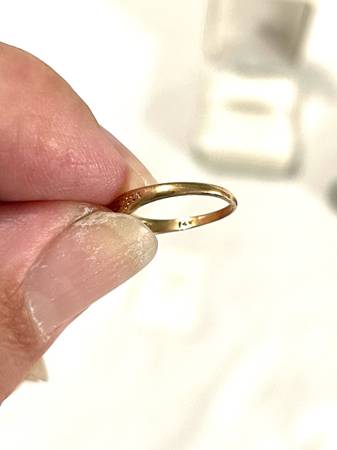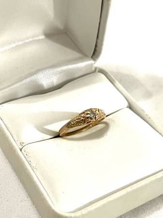 Vintage great condition preowned 14 karat gold diamond ring. Size 4. Weighs 2 grams. 14 karat gold is at $78 per gram. So just add me meltdown value it’s worth $161. But this is a piece of jewelry great condition plus it has a diamond. I’ll bring a diamond tester.