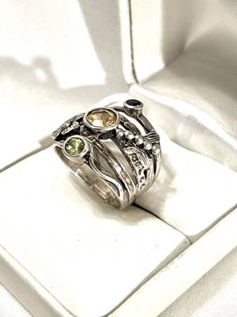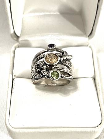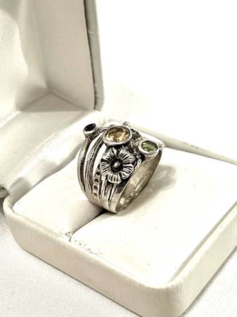 Vintage rare find made in India .925 silver ring with valuable (Citrine , Peridot & amethyst) gemstones. Size 7.5