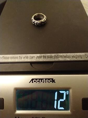 This is a very nice ring with some weight to it. My fingers have swollen up so I can't wear it anymore. Original price $964. Will come with box and bag. $415 is my price.