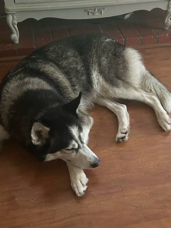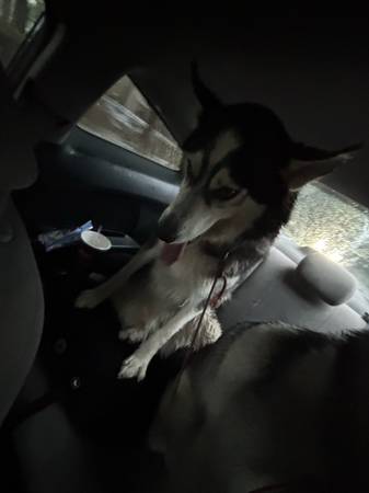 2 huskies found this morning. Looking for a new home. Rope was the leash on the male. Female also had a rope leash and collar too. Both very sweet. Male is not fixed. Female may be pregnant.