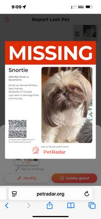 PLEASE HELP! Missing a Small tan and white female dog. Last seen on Sunday around 4pm. Reward if returned safely. Breed : Shih Tzu Female spayed Approximately 10lbs Friendly Crooked bottom teeth...