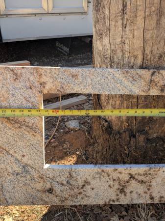 3/4" x 66"x 19" , has cut out for drop in sink 17 1/2 x" 10" , has eased front.