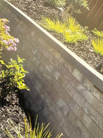 PISAEDGE RETAINING WALL IN MIDNIGHT TERRANCE COLOR COVERS 26 SQT /84 PC PER PALLET WE HAVE 5 FIVE PALLETS AVAIABLE NOW $550 PER PALLET FIRM COVERS 26 SQFT/64PC