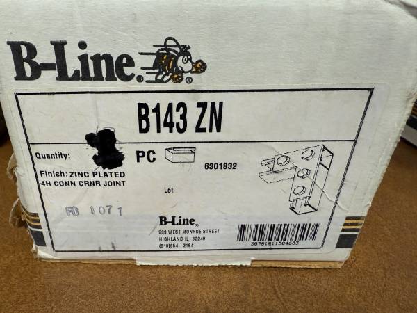 (8) B-Line B143ZN 4-Hole Corner Plate Zinc Plated