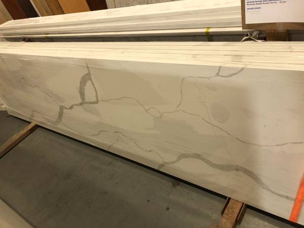 We have Prefab Quartz countertop Calacatta White finish with square edges. Carry all size in stock come purchase and pickup don’t need to order. Size from:
