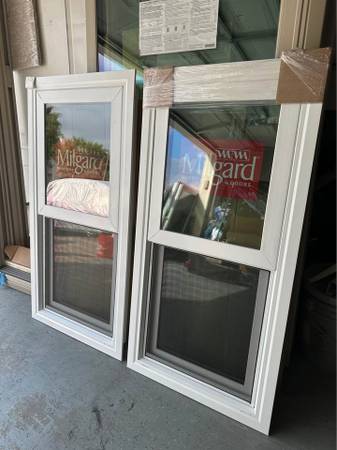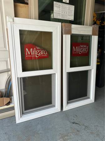 Brand New, never installed ✅ Premium Milgard Tuscany V400 Series Single Hung windows in White color with SmartTouch lock, Screen, Vent.