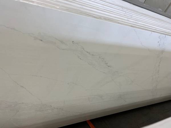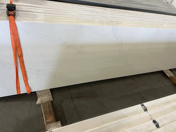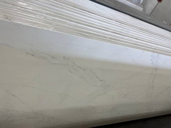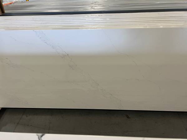 We have Prefab Quartz countertop/Calacatta Vein White finish with square edges. Carry all size in stock come purchase and pickup don’t need to order. Size from:
