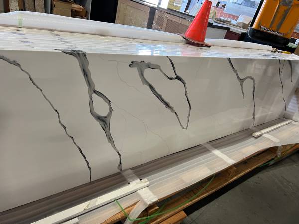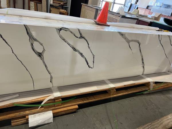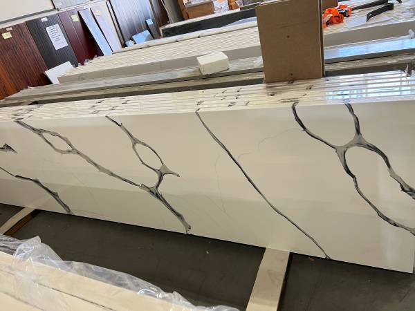 We have Prefab Quartz countertop Calacatta Black Wave finish with square edges. Carry all size in stock come purchase and pickup don’t need to order. Size from: