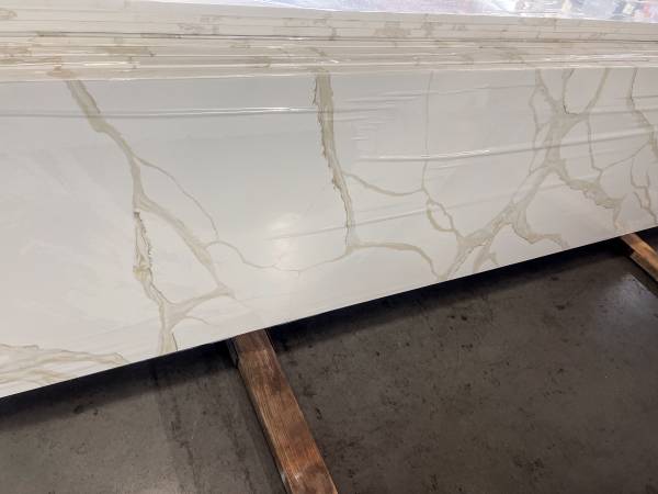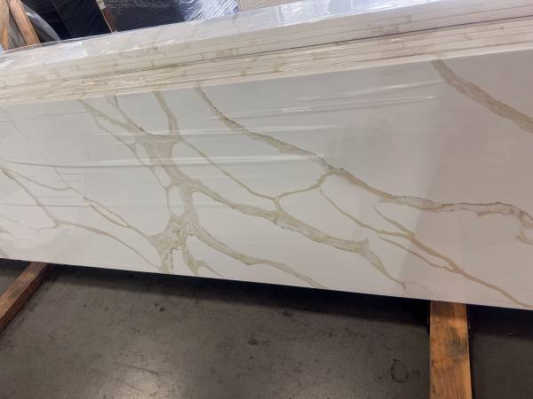 We have Prefab Quartz countertop Calacatta Fantasia Gold finish with square edges. Carry all size in stock come purchase and pickup don’t need to order. Size from: