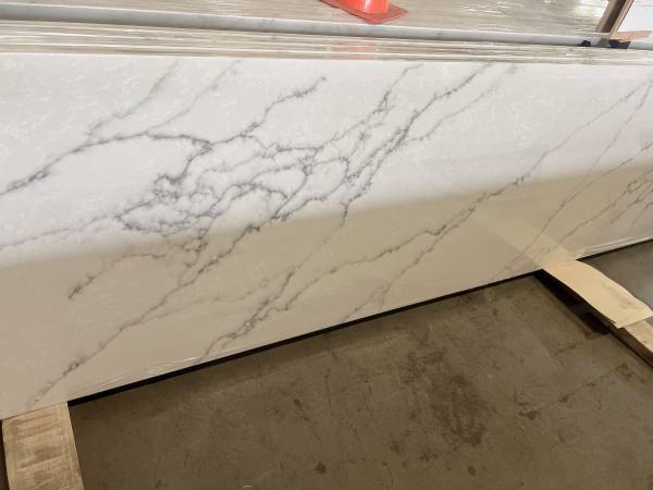 We have Prefab Quartz countertop/Calacatta Ocean Grey finish with square edges. Carry all size in stock come purchase and pickup don’t need to order. Size from:
