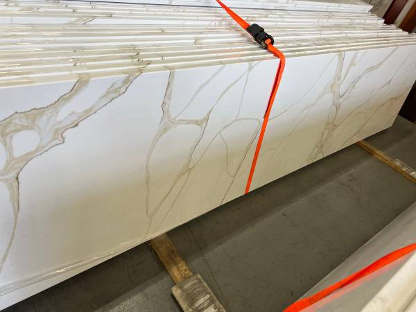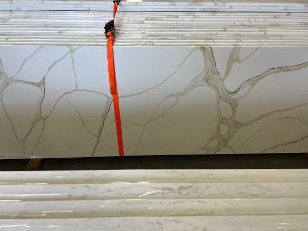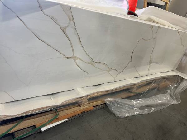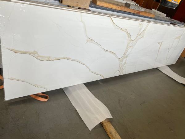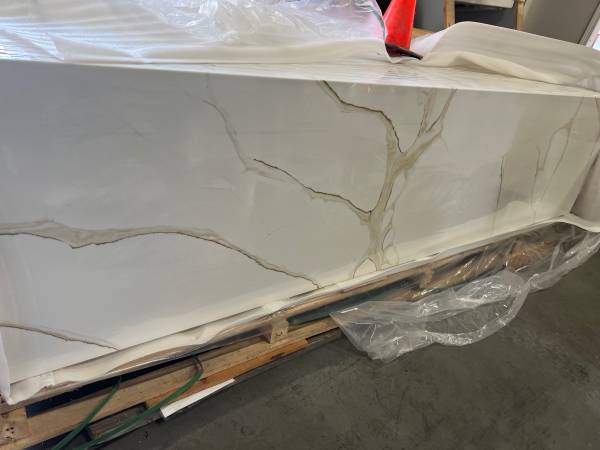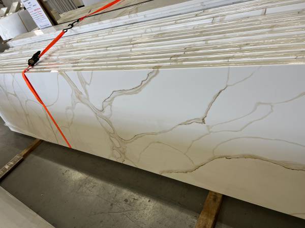 We have Prefab Quartz countertop Calacatta Fantasia Gold finish with square edges. Carry all size in stock come purchase and pickup don’t need to order. Size from: