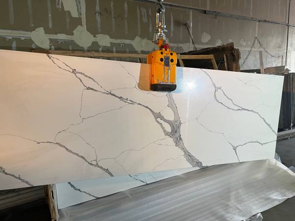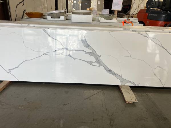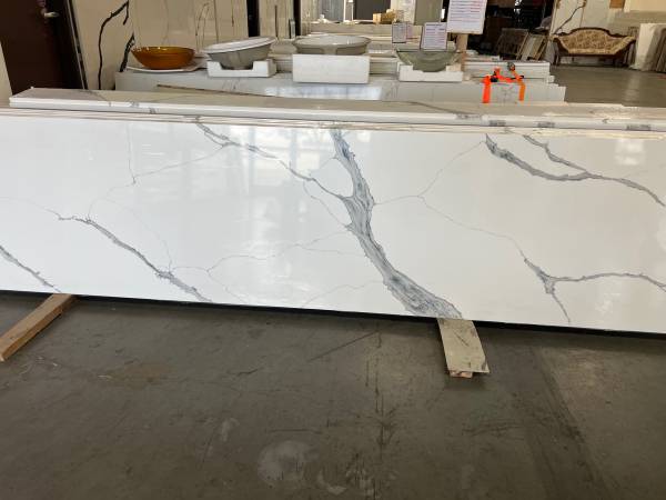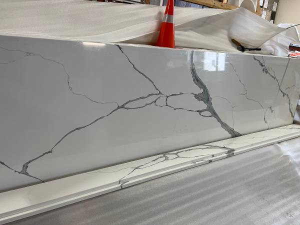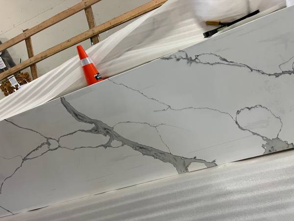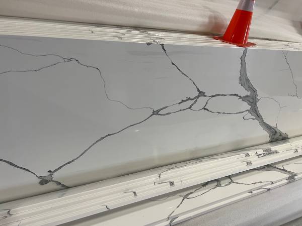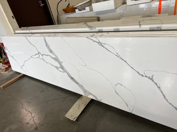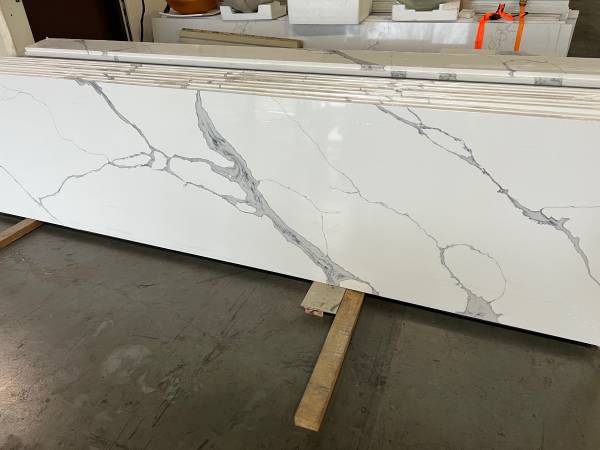 We have Prefab Quartz countertop Calacatta Artemis finish with square edges. Carry all size in stock come purchase and pickup don’t need to order. Size from:
