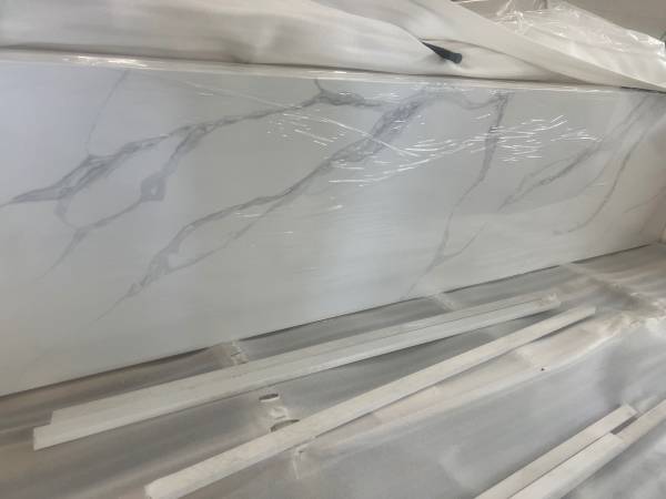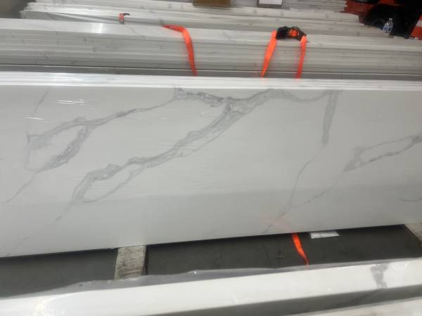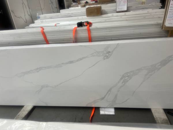 We have Prefab Quartz countertop/Calacatta Caprese finish with square edges. Carry all size in stock come purchase and pickup don’t need to order. Size from: