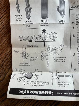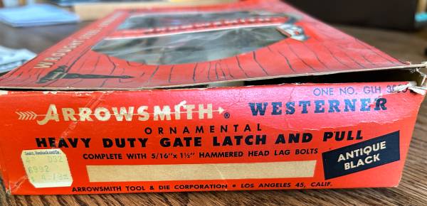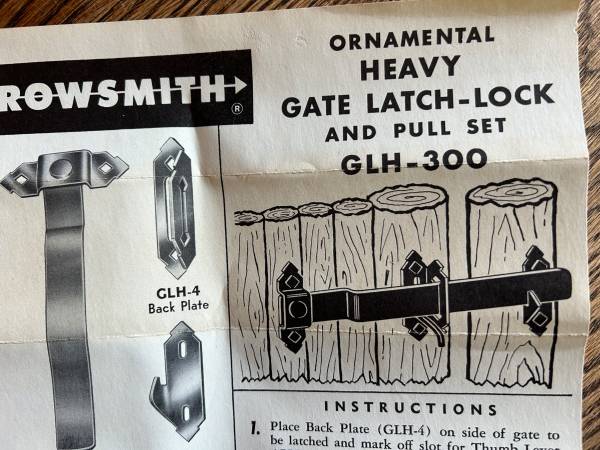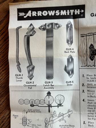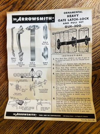 VINTAGE ARROWSMITH ORNAMENTAL HEAVY GATE LATCH & PULL SET GLH300. NEW OLD STOCK. $40