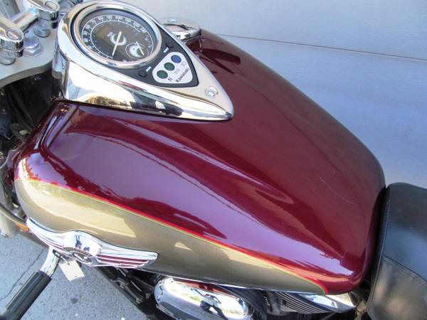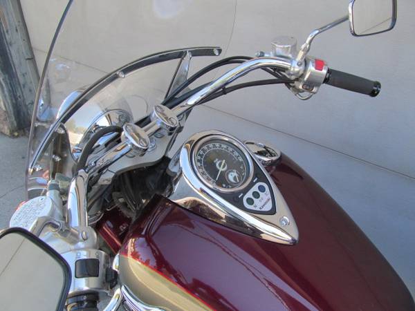 Second adult owner since 2007 and 10k miles, now a Grandpa isn't ridding any more Cruiser. Gorgeous two tone Black Cherry with Slate Gray finishes, powered by a fuel injected 1470cc water cooled V-Twin that provides ample performance with a 5 speed transmission, clean and easy shaft drive, adjustable height windshield, Vance and Hines two into one performance exhaust, wire spoke wheels, passenger backrest with rack, riders floorboards, includes saddlebags, and more. Last major service at 25,673 miles, fresh battery, tires are aged out at 2013 that show an easy life, so a pair of new tires are included. Clean two owner Calif. title, and all types of trade ins welcome. Advertised price is plus government fees and taxes, any finance charges if applicable, any dealer document processing charge ($65), any Ca. tire fees, any electronic filing charge (not applicable), and any emission testing charge (not applicable to motorcycles). Owner operated McMillen's Gold Country Motors, 48 years experienced, licensed, and bonded Calif. Dealer #61239