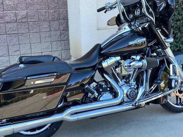 The 2012 Harley-Davidson® Street Glide® FLHX is equipped with an iconic bat wing fairing giving this custom hot rod bagger an amazing Harley® style that needs to be seen and ridden. New for 2012 the Harley® Street Glide® FLHX features a powerful, new, larger air-cooled Twin Cam 103™ Harley® engine with 6 speed cruise drive transmission, providing more performance power for passing, hill-climbing, and riding with passenger and luggage. Check out all of the Harley-Davidson® Street Glide® FLHX specs and features and see why this bike is meant for motorcycle touring.