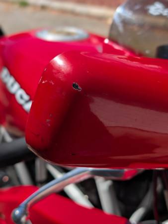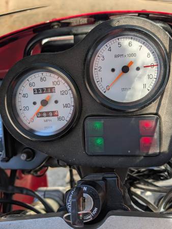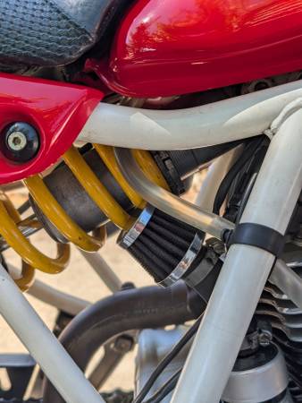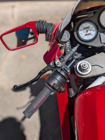 1992 Ducati 900SS in the sought after white frame with black wheels. Belt snapped on original motor. Dropped in another V2 motor. Valves adjusted to the tighter side of LT Snyder's range. Frame has ~34k, new motor has ~22k. I have the speedometer of the newer motor. The BDST38s were tuned many years ago at Nichol's on the original motor, but I can say they respond equally as well on the new motor; it pulls hard to redline.