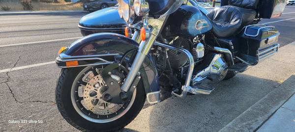 Hello, I am selling our nice 2001 Harley Davidson Shiners edition, basically same as Ultra Classic. We have used this as our family Harley for the last few years, and it has been a great bike. Never broke down, always starts right up. I have done a full recent service on it. All three holes oil change, engine oil, trans oil, primary oil all changed with synthetic Lucus oil. All new brake pads front and rear, both front rotors replaced. I also installed a new rear car tire on it. The car tire makes more contact on road to improve handling and braking., front tire is newer, sidecar tire is worn a bit in center, but that actually makes better road contact when center wears down a bit.