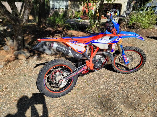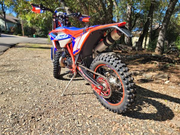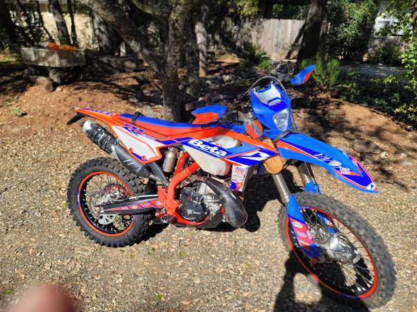 I sold my Husky TX300i in favor of this bike because the weight. It started to become too much for my aged body. This bike was a pleasant surprise. It is 20 pounds lighter and better handling, more agile in technical sections and way more fun on the trails. It does not have the same low end, but it has way more than I could have ever imagined and all that I need (even in the steepest most technical stuff. Good job Beta! Read the reviews on these bikes and you will see they are highly regarded from Pro's on down. This is not the RR model with the Zachs front & rear suspension. Full Kayaba front and rear suspension. This is the first stock suspension I have used since I started riding. It is plush!!! Set up for a 180 pound rider. I also have an unused 2024 Race Edition full sticker kit included.