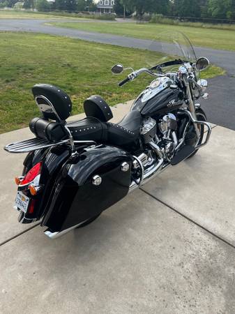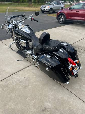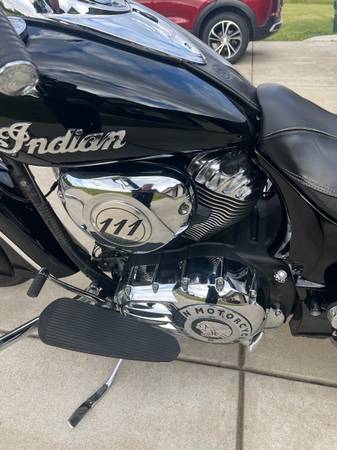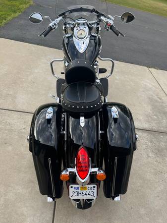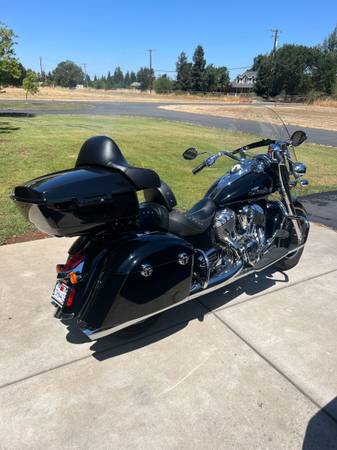 2017 Indian Springfield with the 111 Thunderstroke motor in excellent operational mechanical and cosmetic condition. This bike is wonderful and runs and rides beautifully. Six speed transmission, cruise control, heel toe shifter, driver backrest, quick release hard saddle bags, quick release windshield, quick release passenger backrest and storage rack, and a quick release king tour pack trunk. The bike has 34,800 miles and needs nothing. Brand new Shinko whitewall tires just installed. Good brakes. The oil and filter were just changed less than 400 miles ago. One of the great things about this bike is how versatile it is. You can change the look and functionality of the many accessories in just a few seconds. All quick release accessories are included in the cost of the bike. Clean title in hand and current registration. I will consider strong reasonable offers. This is a great must see bike at a great price!