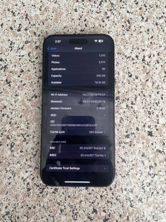 carrier locked to at&t 256 gb in great condition no major cracks or scratches. Have original box too