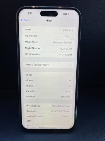 T-Mobile iPhone 14 Pro Max 128GB - Color: Black Titanium - Battery lifetime 87% - Condition 9/10 - No shipping No trade No PayPal - Ask for $400 Call Or Text 530-746-238-8