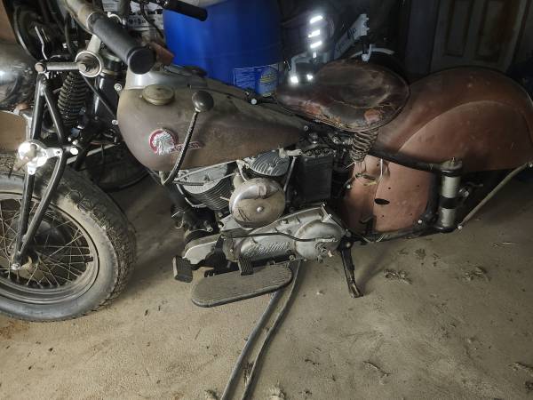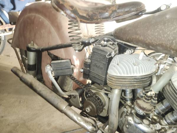 This is a very rare bike and has almost never been driven. The last known 1942 Indian Sport Scout off the assembly line # 397. It ran when parked. Probably needs a carb clean. The last owner was an Indian power plant builder from the Indian dealership all of his life. Its a stock 45 cubic inch motor. And was his bike from a teenager. Lots of extras come with this bike, included but not limited to: