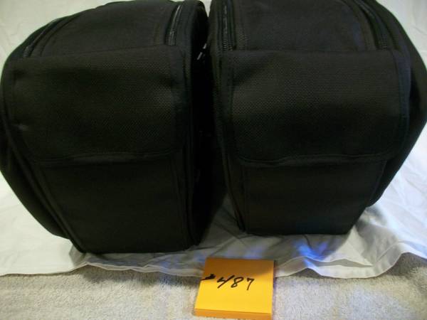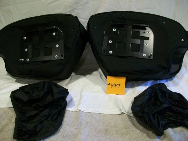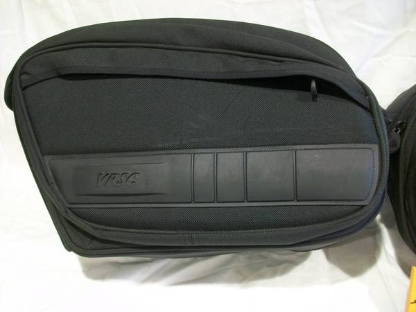 Harley VRSC saddlebags. Fits 2002-2011 VRSC models (except VRSCF). Part #91136-07A. Saddlebags are quick detachable, features exterior packets and an interior pouch with a dual zipper opening. Comes with two rain covers, one with each bag New, never mounted.