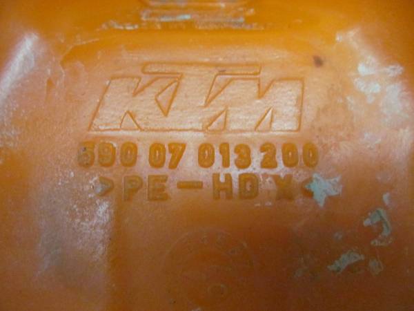 The tank, seat, skid plate, and flag mount are off of a 2001 KTM 520, and should also fit similar year 400, 525, and 540.