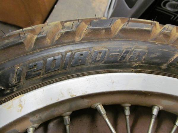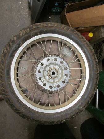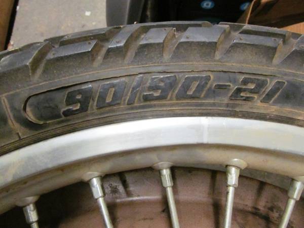 Fourth items are a pair of OEM KTM 18/21wheel assemblies I bought new for a 1997 KTM 620 EXC LC4 chassis to have a set of more streetish tires ready to go when needed. These wheels are complete with AVON Gripster AM24 120/80/18 and 90/90/21 tires, both rotors, 40 tooth sprocket on a cush drive, uses a mechanical speedometer drive, or a fitted spacer for without. Older tires, the set was used less than a few hundred miles and have been in dry storage for about 23 years, $650 for the complete set. Unlikely available from KTM, but newer like wheel assemblies would run about $1,100 for a complete cush drive rear, and about $800 for a front.