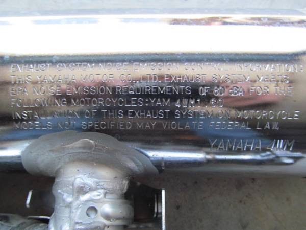 2000 XV16 or 2004 XV17 OEM exhaust system reads 1.60 engine and 4WM on emission stamping, the XV16 is 1,606cc, and the XV17 is 1,670cc, but the 4WM makes it more likely the XV16 is the donor, and likely fits both bikes. Without road rash when needing to fix crash or fall damage on the cheap, or for when the noise police come out and a fixit ticket needs to be solved $70