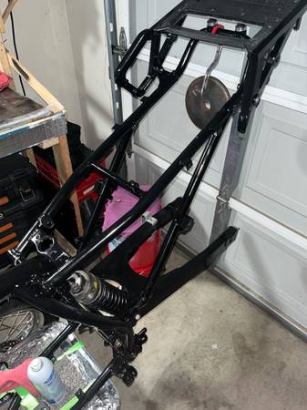 I dont have a title for it This is a Rebuild I was working on but I need to liquidate. No rust on the whole thing, all of the steel and most of the aluminum has been sanded and repainted black. I dont have any fairings except for a black front splash guard. Motor is disassembled. I have everything except the head and the cam with the detensioner. I have the airbox and muffler as well. Tires are brand spankin new. Message for specific parts