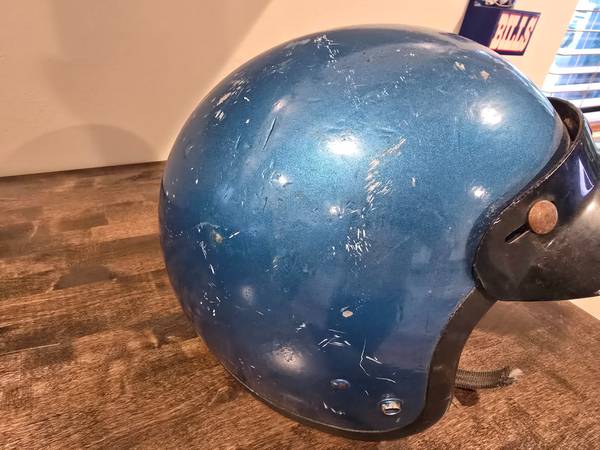Vintage 1975 Bell Size 7 1/8 Mag II Magnum Motorcycle Helmet With Visor for $300. I believe it has been repainted. It has scratches and blemishes as pictured. The interior has rot and dirty.