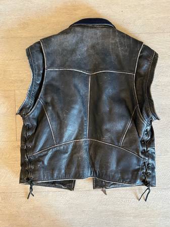 Purchased from Harley Davidson in the 1990’s and well taken care of. Men’s Size Large Vintage Harley Davidson Panhead Convertible Leather Jacket / Vest. This Classic Distressed by Design jacket has zip off removable sleeves. It has multiple pockets and zippered enclosures. The laces on the sides ensure a good fit. This jacket is in Very Good Condition. There are no rips or tears on the lining, the laces are intact and all of the zippers work. Comes from a smoke free home. Feels good and Looks good!!