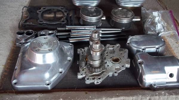 Harley Davidson fish fin mufflers, part #65366-00, 4 HD - FLS 1450, left & right sides, 1 3/4"dia 30"long. [$200], Complete fresh top end & timing gears 99-2016, No wear, Cylinders still has hash marks & no top ring wear [$600]. Bates thick riding jacket & bottom HD leathers, Medium [5'11" @ 170lbs Slim $400], leather saddle & fork bags, etc. Ford V8 14-gauge metal emblems 8"wide x 15"high, [$75ea] Tig welding setup w cable connectors, everything [$200]. Stainless steel welding stock, flat & sm. round bars/stock. Walt text is best @1st