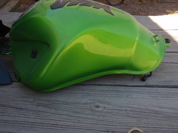 2012 Kawasaki Ninja 650 gas tank and faring green color Faring is complete with gauges removed Tanks is complete fuel pump & cap Both are in excellent condition