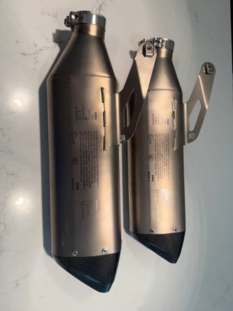 I am selling two BMW Akrapovic Exhaust Slip-Ons. They fit (2020-2024) S1000RR/M1000RR/M1000R. Both exhaust slip-ons are in excellent (like new) condition. I am asking $1500 for both, or if you only have a need for one exhaust the price is $750. I accept CASH ONLY, and NO TRADES will be considered. I will not deliver the exhaust slip-ons to you.