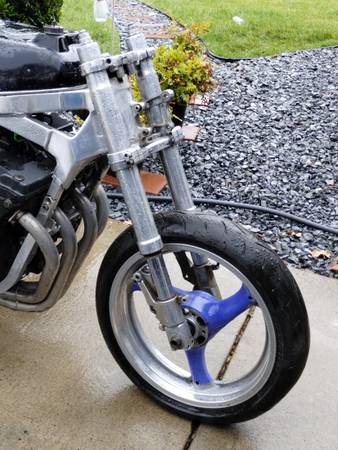 1988 frame ,swingarm ,forks , and motor with 1991 tank and plastics. Motor is new with very very low miles. Story on that is the guy I got it from bought a brand new bike then turned it into a race bike with a new factory crate racing motor. The original motor hasn't even had its first service as none of the hardware has any signs of tool markings on them. I just stuck the motor in and set aside for later. The first pic is just what bike looks like when complete other pics are the actual bike. Frame swingarm and forks are polished. Carbs are 38mm mikuni flat slides with filters and wheels are custom that ran around 3k . If u want it put back together and running the price goes way up so shoot me a respectable offer . FYI these older bikes are classics and I've seen them sell on auctions for 20k and up so do your research if u think I'm bullshitting so don't waste my time with stupid offers!!