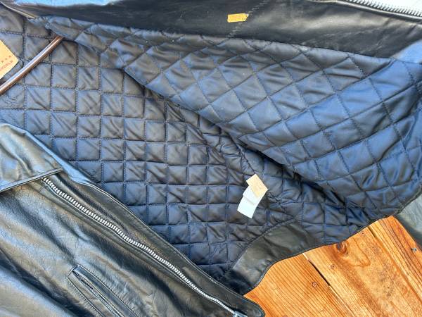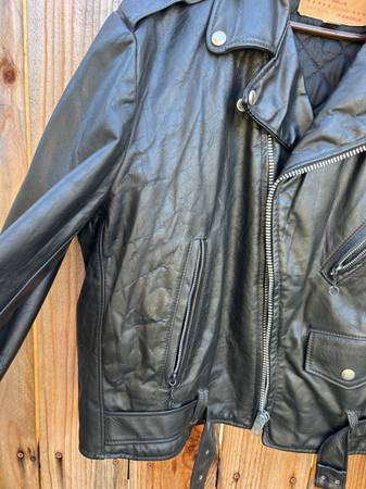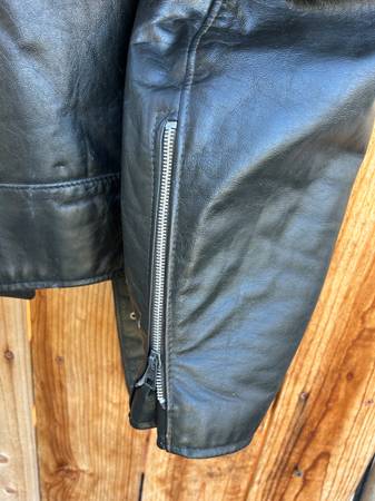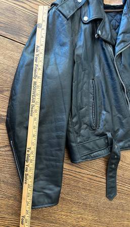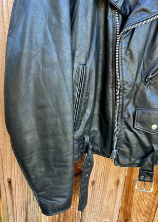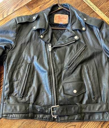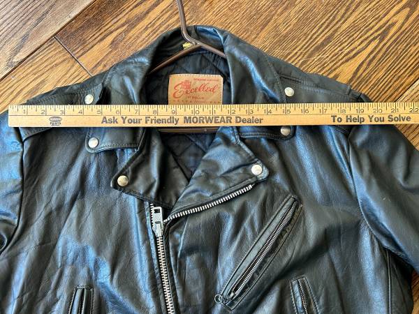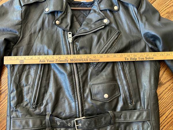 VINTAGE MADE IN USA, EXCELLED BLACK LEATHER MOTORCYCLE JACKET. SIGE 46. IN BEAUTIFUL CONDITION. $150