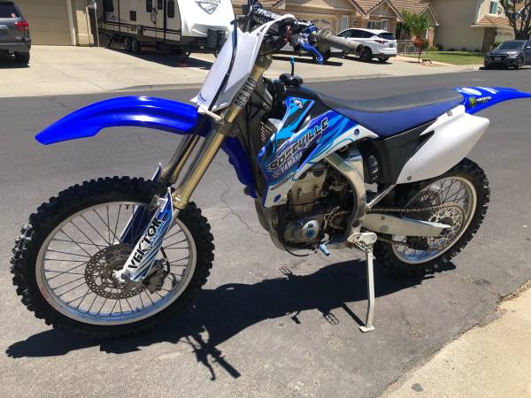 2007 Yamaha YZ 450F. Good condition. Recent valve adjustment, oil change, front fork seals and service, new clutch and basket was replaced, recent tires and chain and more. Has motocross kick stand, break away levers, bars, larger radiators, guards, etc. comes with extras. Bike is very fast! Pink slip in hand and current registration.