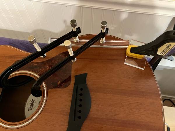 Bridge re-glue and Neck resets. Cracks re-glued and stabilized.