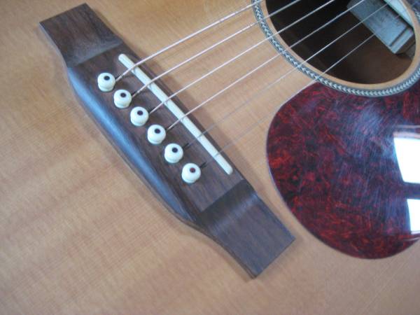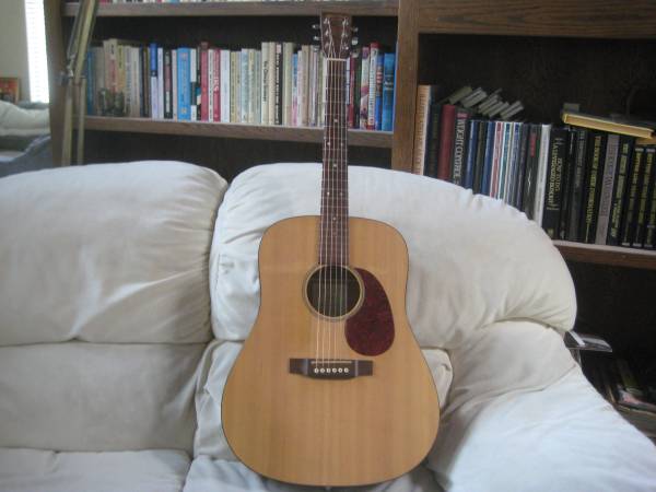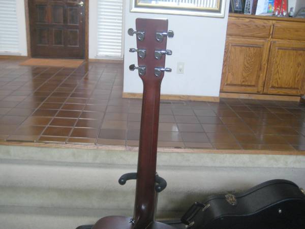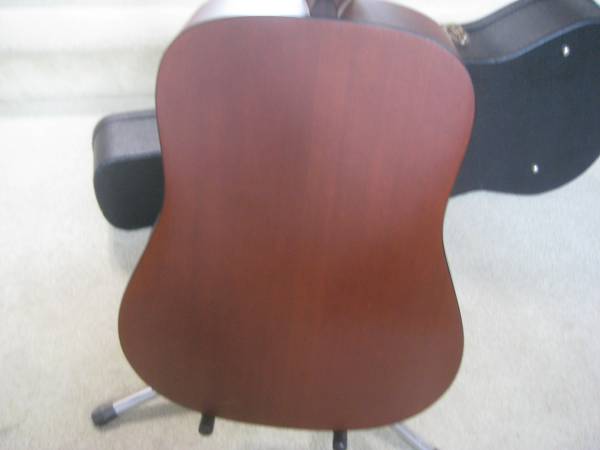 The specs include a 1-11/16" nut width, 14-frets, slotted bridge, a dreadnaught body with a satin mahogany body and neck, superb action without any need for a neck reset, and has an under saddle pickup and end pin jack.