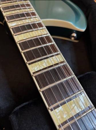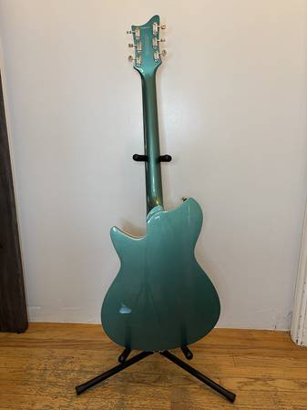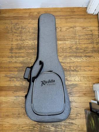 Excellent condition featuring chambered mahogany body, German carve mahogany top, bound top and back, two Rivolta Novanta P-90 pickups, two volume controls and one tone control with small black reflector top knobs, three way pickup selector switch, tunomatic bridge, Duesenberg Les Trem II tailpiece, gold Plexi pickguard, set maple neck with C+ profile, bound ebony fingerboard with aged pearloid block inlays and medium jumbo frets, bound peghead with Rivolta logo, Kluson Deluxe vintage style tuners with small oval metal buttons, gold Plexi triangular truss rod cover, Laguna Blue Metallic finish, nickel plated metal hardware, and padded gray Rivolta gig bag. This guitar shows light signs of play wear including some light scuffs on the treble side back of the body, pick scratches and light tarnishing on the metal hardware, but the guitar is overall very clean. This guitar is set up well and the frets don't show any signs of use.
