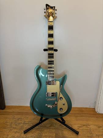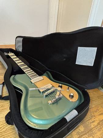 From Rivolta Guitars: The COMBINATA XVII is the evolution of a design with which followers of Dennis Fano should be very familiar. The larger and slightly offset body give the COMBINATA a shapely silhouette and more substantial feel. The chambered mahogany body features a German carve top ( mahogany on solid colors, maple on burst / natural ). The 25″ scale maple set-neck sports a comfortably chunky “Rivolta C+” profile, with 24 medium jumbo frets, bound / full width inlayed fingerboard and a Duesenberg Les Trem II.