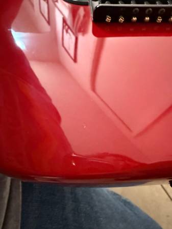 This is a Squier by Fender Bullet Strat in red. Really great condition for a guitar made in the early 2000’s. Tried to get a picture of a little ding on the front but it didn’t show up super well. Just strung with Stringjoy skinny top heavy bottoms. This thing is an absolute blast to play.
