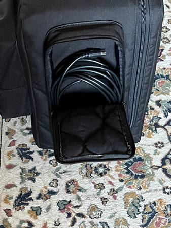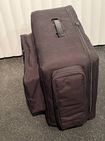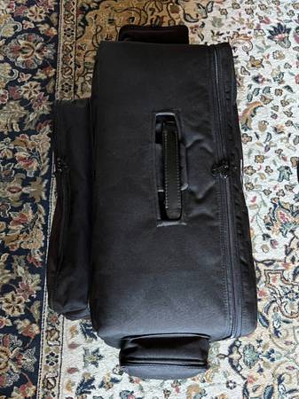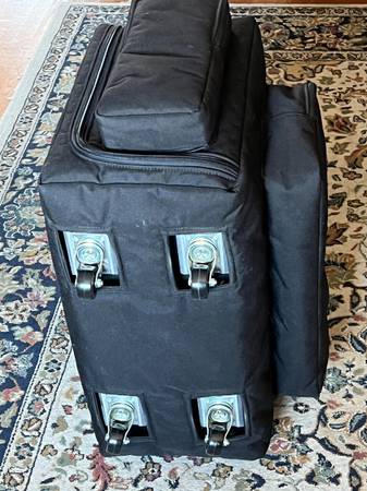 * Bottom cutouts for casters, reinforced. Enables rolling the bagged amp & gear.