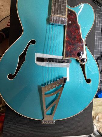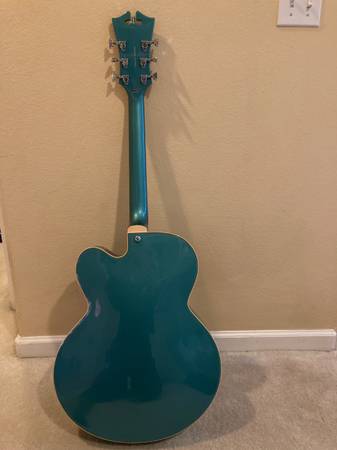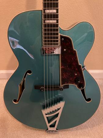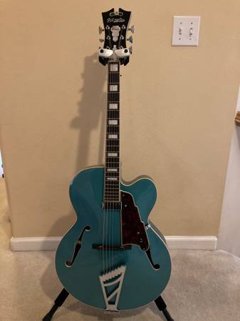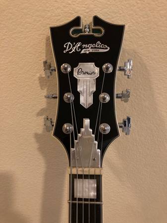 Laminate Body, Rosewood Fretboard, Single Floating Mini Humbucker Pickup, Set-Neck, Floating Bridge, 22 Frets. Classic D'Angelico Oversized Headstock, Stairstep Tailpiece and "Empire State Building" Truss Rod Cover. A wonderful tribute to John D'Angelico's original hand-made guitars. Comes with soft gig bag. Fantastic "intro" jazz guitar. I'm selling because I have too many guitars and no longer have the conditions that led me to buy this lovely guitar. Lightly played. Great action, Feels, looks like new.