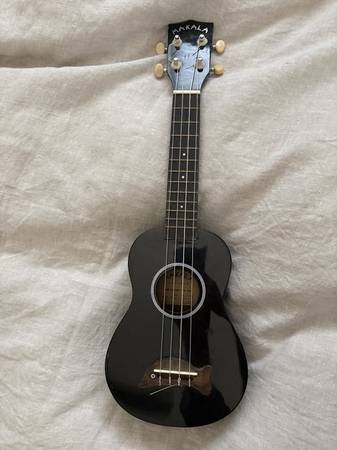I have a Makala Dolphin soprano ukulele in charcoal black, model MK-SD / CBK. This is strung for left-handed playing, but could be switched to right-handed by re-stringing and flipping the bridge insert. These are a great beginner's ukuleles and are known for being good to play and try out. The neck is nice and straight.