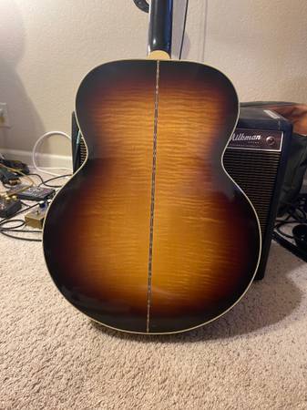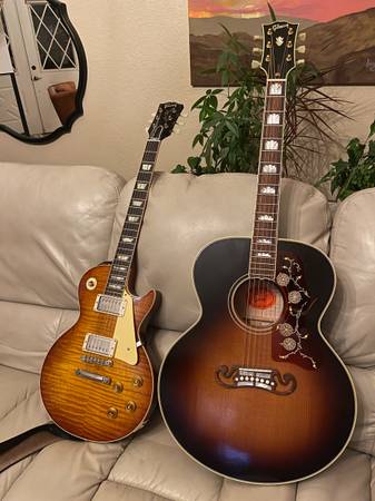 Bought during pandemic new from Sweetwater - has never left my house. Sounds big and awesome. Gorgeous flame on the back and the neck. Killer wood grain. Original custom shop case, certificate, all that.