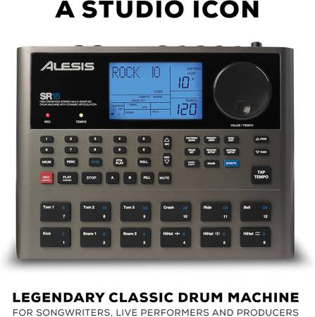 Packed with modern percussion sounds! The Alesis SR-18 is packed with the sounds you want and need,from totally electronic to totally acoustic drums and hits! No matter the style you're after — from rock to hip-hop to country — the 24-bit SR-18 has a large 32MB soundset that's got you covered. Onboard effects include reverb, EQ, and compression, letting you customize each sound to your satisfaction. And for on-the-go music making, the SR-18 can be powered by battery or by the included AC adapter. The SR-18 is your one-stop rhythm solution!